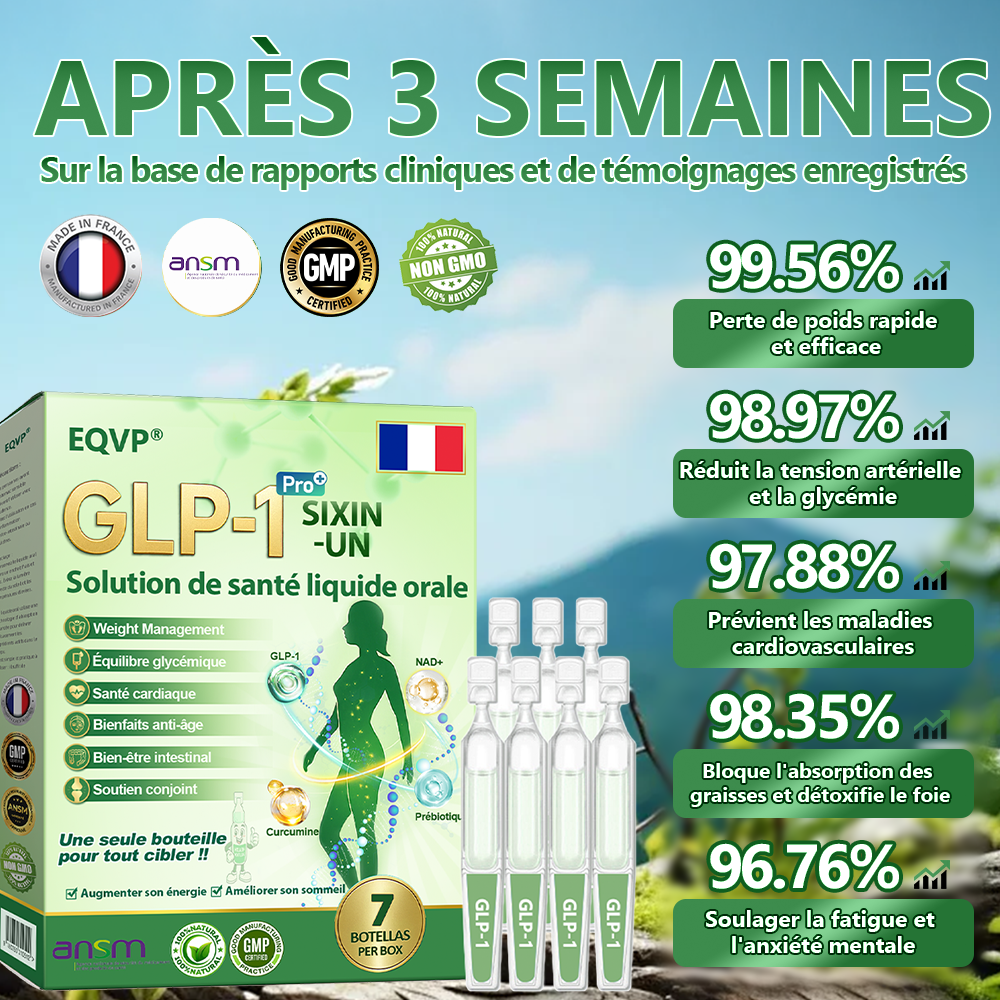 𝗘𝗤𝗩𝗣® GLP-1 SIXIN-UN Solution de santé liquide orale a été développé par une équipe de plus de 30 experts internationaux en endocrinologie et diabétologie après plus de 3 ans de recherche. Il associe le tirzépatide à de puissants ingrédients à base de plantes pour stimuler le métabolisme, accélérer la combustion des graisses et favoriser la santé digestive et lymphatique. Cette solution buvable a été approuvée par l'Agence française de sécurité du médicament et des produits de santé (ANSM) pour sa sécurité et son efficacité, offrant une solution scientifiquement prouvée pour la perte de poids et le bien-être général.